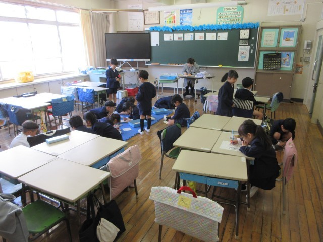 教室の入ると、『校長先生、名札付けられたよ!』と元気な声が響いてきました。