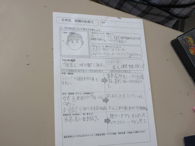 学習、生活、家庭でのめあてとともに、自分のよいところも書きます。自分のよさに気付き、自己肯定感をもてればという担任の先生方の思いです。