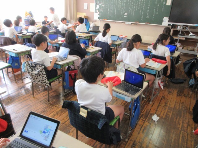 『お母さんの請求書』という家族愛、母親の無償の愛について考えました。主人公の『たかし』の気持ちを考えながら、家族の大切さについて考えを深めていきました。たくさんの子が手を挙げて進んで発言していました。最後は自分の振り返りをタブレットを使って表していました。