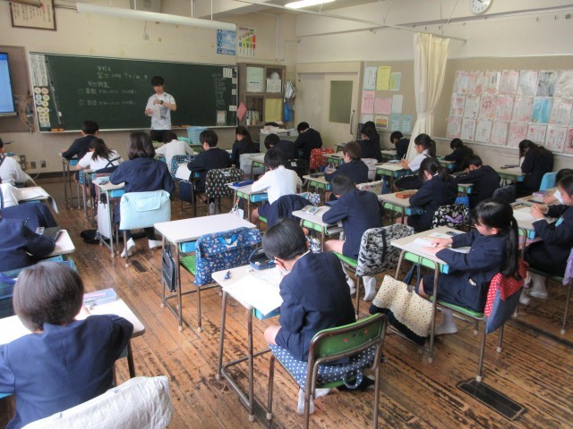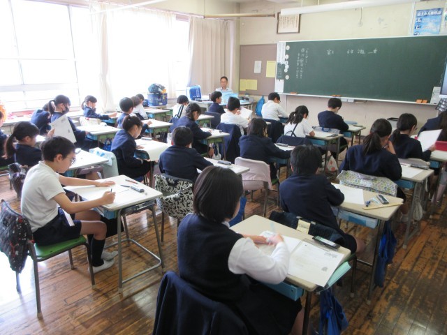 4年生、初めての学力調査です。教科は国語と算数。問題は冊子になっていて、時間いっぱいかかりながらも必死に問題を解いていました。真剣な表情に成長を感じました。