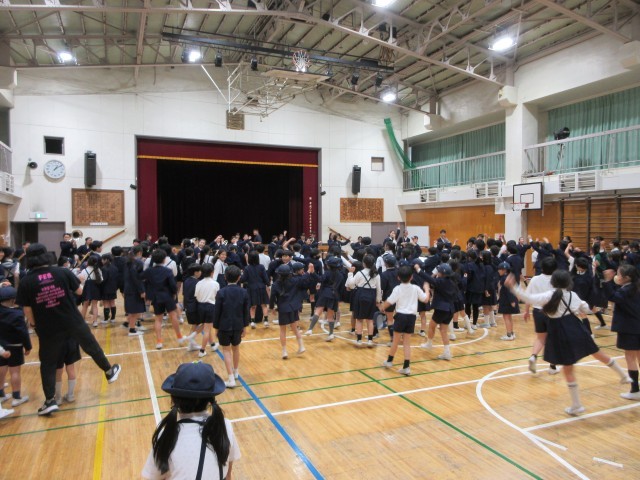 はじめは『風になりたい』を演奏しました。とてもきれいな響きが体育館に広がりました。次は、『ジャンボリーミッキー』、見に来た子もみんなノリノリで踊り、体育館が夢の国になりました。アンコールもかかりましたが、5時間目があるので今日はここまで。たくさんの新入部員が入ってくれると嬉しいです。『やってみよう!』の心でチャレンジしてほしいです。