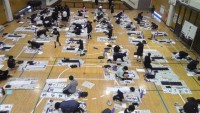 小学校生活最後の書初めは、『夢の実現』か『緑の大地』のどちらかを選んで書きます。