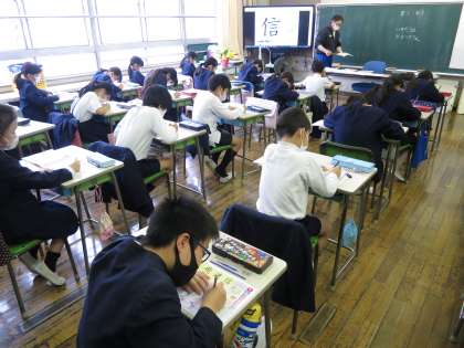 配られた教科書を興味をもって読んでいる子もいました。持ち上がりのクラスでは、早速漢字の練習です。
