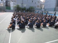 9月1日の始業式で校長がその話をし、4年生以上は区が作成したビデオを視聴して震災について学習しました。8月31日に配信されたスママチで同じビデオ(YouTube)をご覧になれます。ご家庭でも地震が起きた際の行動についてぜひ話し合っておいてください。