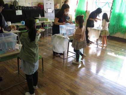 会場は体育館の他に3階の各教室でスーパーボールすくい、コイン落とし、ペットボトルチャレンジ、富士山の玉入れが行われました。
