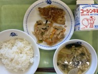 献立:牛乳、カレーうどん、切り干し大根のごま酢和え、ヨーグルトポムポム