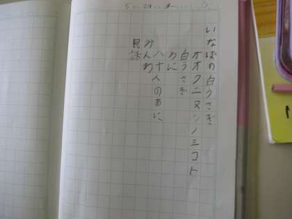 教科書で『いなばの白うさぎ』などの日本の神話を読みました。その後、図書館から借りてきた関連する本を紹介しました。梅雨入りも近づいてきました。雨で外遊びができない日にはたくさん読書をしてほしいです。