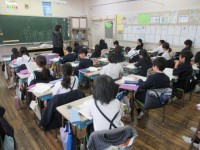 先日、消防署の見学をしましたが、学校の防火対策を調べています。校内を回って、煙探知機や熱探知機、火災報知器、消火栓などの場所や数を調べながら、火事から学校、子供たちの命を守るための工夫を調べています。職員室の見学では、副校長先生から火事のときの放送の仕方について説明してもらいました。みんな一所懸命に調べています。