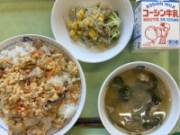 献立:牛乳、けんちんうどん、たこあげくん、ミャクミャクポンチ