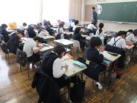 4年生は2日目の席書会です。シーンとした中で、みんな真剣に取り組みました。太い字...