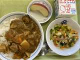献立:牛乳、カレーライス、こんにゃくサラダ、りんご 1月24日〜30日は「全...