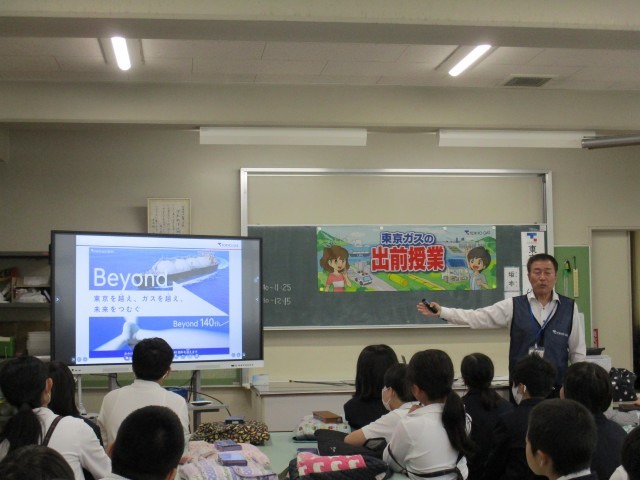 10月21日(木)の3,4時間目に5年生は各クラスごとに学びのキャンパスプランニングとして、東京ガスの方にお越しいただき出前授業を受けました。