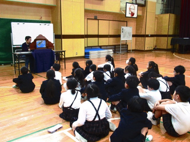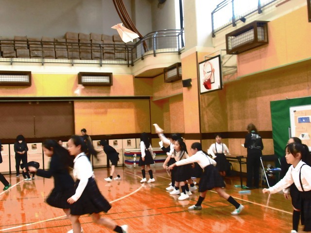 10月22日(水)に台東区教育支援館の方をお招きして、民話を紙芝居でお話していただいたり、「へそ飛行機」「いか飛行機」作り体験をさせていただいたりしました。紙芝居では、台東区に伝わる民話「大鯉のたたり」のお話を聞きました。お話してくださった方の語りがとても上手で子供たちはすっかり物語の世界へ引き込まれていました。また、「へそ飛行機」「いか飛行機」作りにも挑戦しました。丁寧に教えてくださり子供たちは説明をよく聞きながら一生懸命作っていました。自分で作った飛行機を飛ばして楽しむ姿がたくさん見られました。昔のお話や遊びに触れる、楽しい時間となりました。