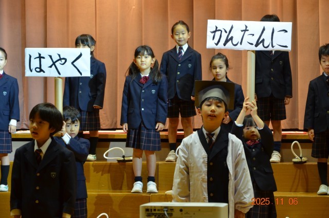 1年生は「ドキドキわくわく まなびのせかい☆だいぼうけん」というタイトルで、入学してからこれまで学習してきてできるようになったことを発表します。