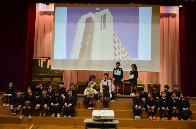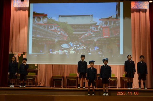 3年生は「台東区まるごと大調査」というタイトルで、台東区の姉妹都市である茨城県筑西市のお友達に台東区のことを伝えるという体裁で発表します。社会科や総合的な学習の時間で取り組んだ内容です。