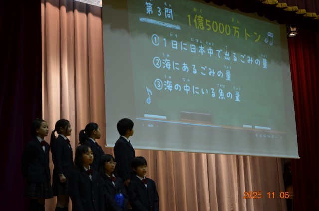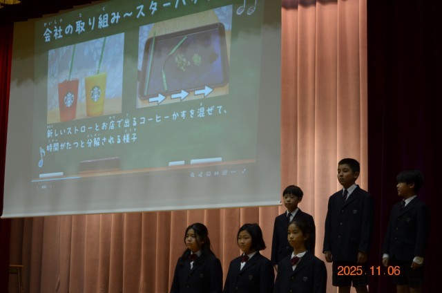 4年生は「わたしたちのくらしと環境」というタイトルで、SDGsのことを中心に社会科や総合的な学習の時間で学習したことを発表します。