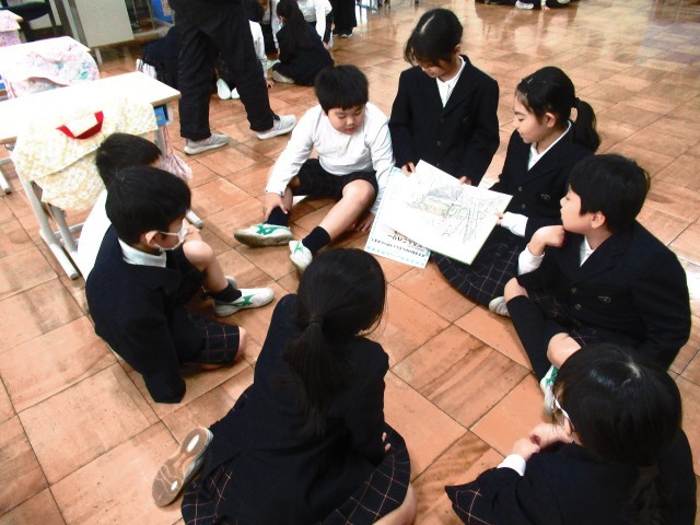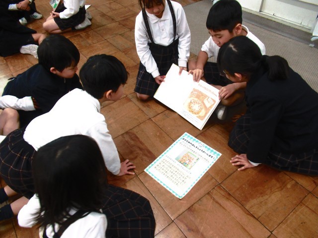 そして、19日のお昼の時間に、1年生に実際に本を紹介し、読み聞かせをしました。1年生は、本の内容や絵のおもしろいところに注目してくれて、楽しそうに聞いてくれました。話し合いで本を選ぶ決め手となったポイントに注目してもらえて、3年生も話し合って決めた成果が出ていたように思います。