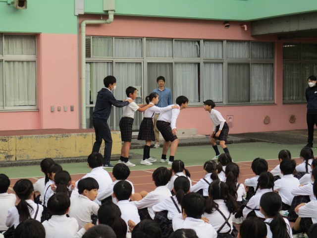 休み時間に校庭で遊べる遊びの紹介として、「ことろことろ」をしました。