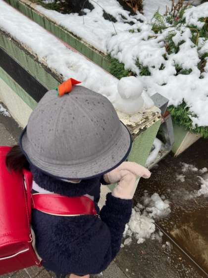 大勢の子供たちが関わり合って、ひとときの間、雪遊びに興じていました。その様子をお知らせしたいところですが、学校ホームページではなかなかそうもいきません。子供たちが楽しそうに関わり合いながら、協力して遊んだあとには、正門にかわいらしい雪だるまが仲よく整列していました。
