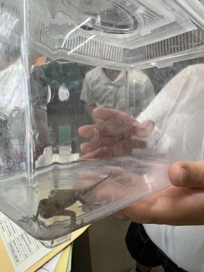 本校には小さな命を大切にする児童が大勢います。ヤモリを捕まえたと知られれば、ちょっとしたヒーローになれます。よかったですね!