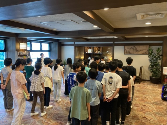 朝会では、ラジオ体操で身体全体を目覚めさせました。みんな体調も良く、天気も良いので、充実した2日目になりそうです。