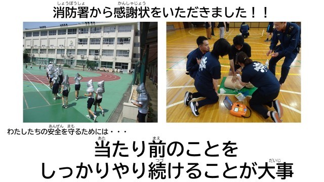 始めに、日本堤消防署から感謝状をいただいたお話をしました。その中で、当たり前のことを当たり前に続けることの大切さについて触れて話しました。