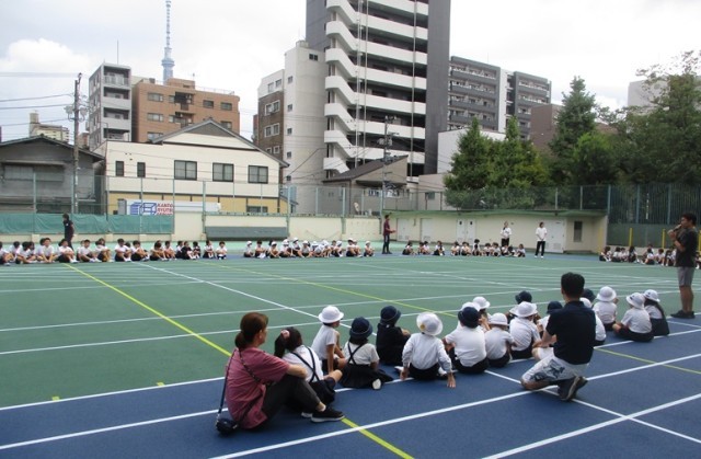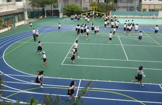 その層のお陰で足腰に優しい反発力があり、また水を通すので雨が降っても水たまりができにくくなっています。みんなで校庭を大切に使い、良い状態が長く続くようにしていきたいと思います。