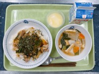 先週に引き続き、今日も食品ロス削減を意識した献立です。今日はきゃべつの芯やにんじんの皮をトマトライスの具やサラダのドレッシングに使いました。