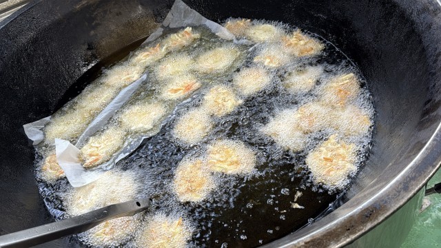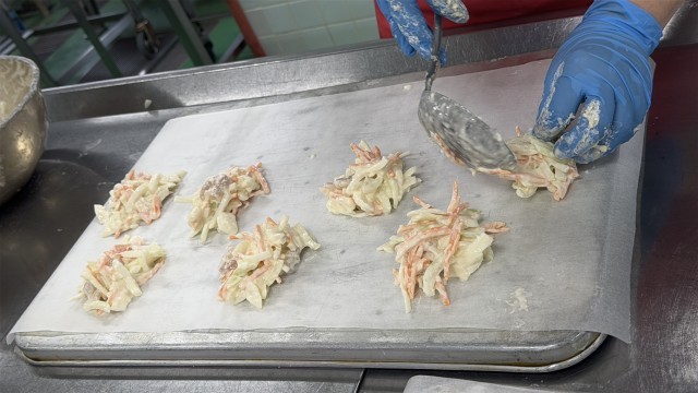 かき揚げを、おじいさんがお地蔵さまにあげた「笠」に見立て、雪が降り積もる様子を大根おろしのタレで表現しました。