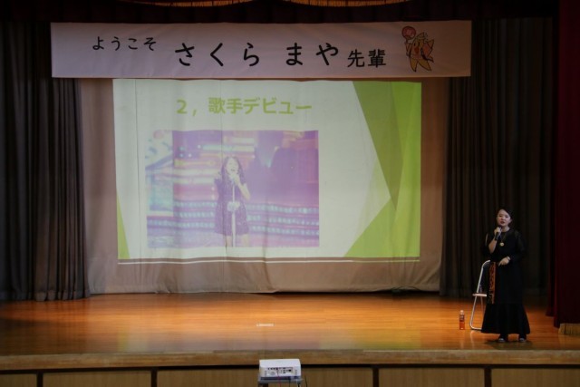 小学校のときから歌手として活躍されたさくらまやさんが、小学校時代のこと、歌手のお仕事のことをお話ししてくださりました。また、「夢を追ってチャンスをつかもう」というメッセージも、子供たちの心に残ったようです。
