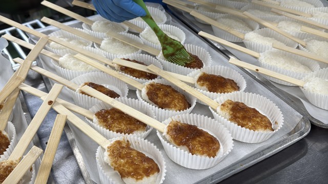 今日は、お馴染み中山晋平先生をテーマにしています。中山晋平先生は、長野県のご出身です。ということで、長野県の郷土料理である「五平餅」を出しています。