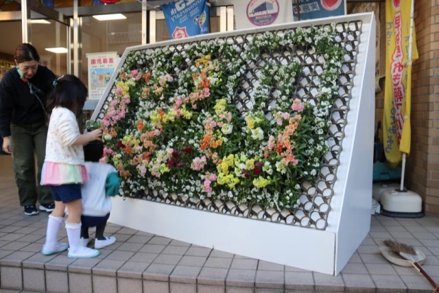 一人一鉢ずつかざっていき、千束幼稚園の子も参加し、120の花文字ができあがりました。