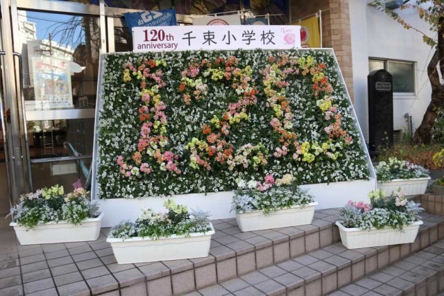 台東区「花の心プロジェクト」のご協力により、お祝いの花文字を作りました。