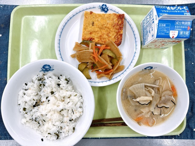 くじら汁にはくじらの皮を使います。食べなれない食材の一つですが、コリコリした食感で子供たちもよく食べていました。