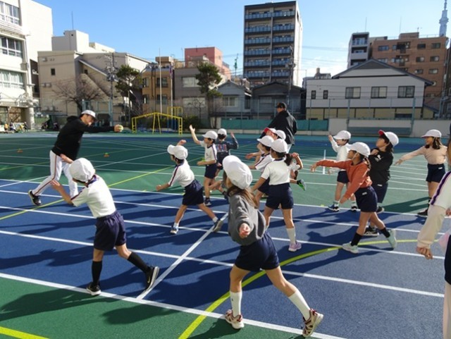学びのキャンパス台東アクションプランの一環で、巨人軍・ジャイアンツアカデミーのコーチ野球教室を2年生でクラスごとに行いました。