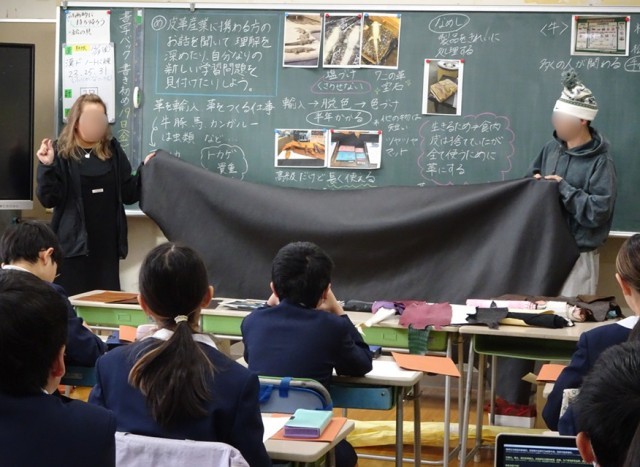 6年生の総合的な学習では、地域の歴史ある産業の一つ、皮革加工業について学んでいます。