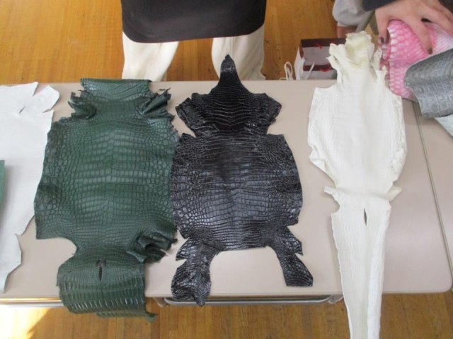 様々な動物の革を実際に持ってきていただき、手触りや模様などを確かめることができました。