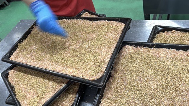 松風焼きは、鶏ひき肉などをみそやしょうゆで味付けし、方に入れて焼いた料理です。ごまや青のりを表面にふりかけるのが特徴で、裏には何もつけません。その様子から、「裏がない=表裏のない正直な生き方」を表すおせち料理になっています。