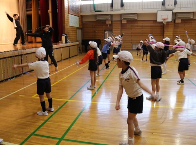 東京都教育委員会の「笑顔と学びの体験活動プロジェクト」で、プロなわとびプレーヤーの生山ヒジキさんとそのメンバーの方に来ていただきました。