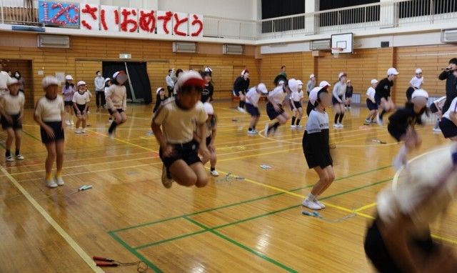 休み時間には、「ヒジキさんの真似をするんだ」という児童が、いつもより早回しでなわとびしていました。