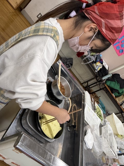 千束小学校の人気給食メニューをテーマに、ジャージャー麺、大豆もやしのナムル、ふしぎな目玉焼きを作りました。