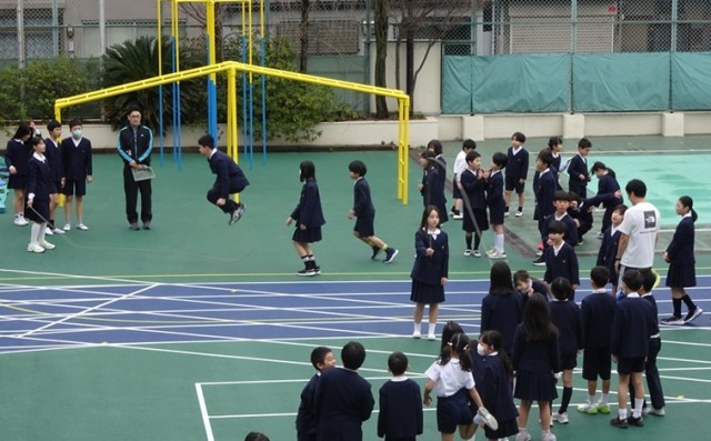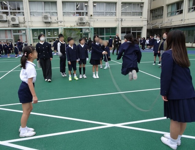 高学年の児童が縄を回して、楽しそうに跳んでいました。低学年の子を思いやり助ける姿はいつもながら素晴らしいと思います。