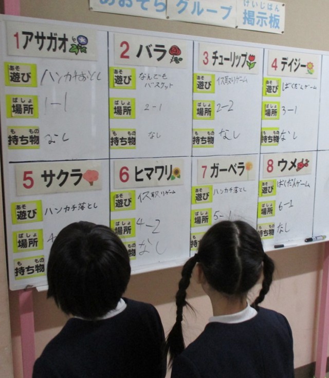 予定を決めてボードに書く、1年生の誘導、出席確認、ゲームの説明と進行、…