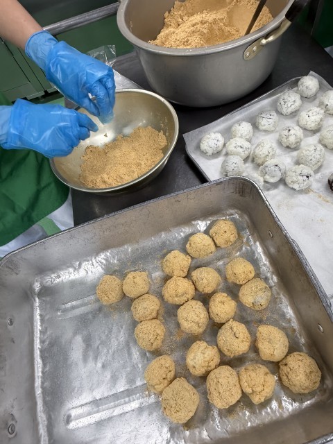 似ている食べ物ですが、その特徴を考えると見分けをつけることができますね。今日は給食室でぼたもちを手作りしました。