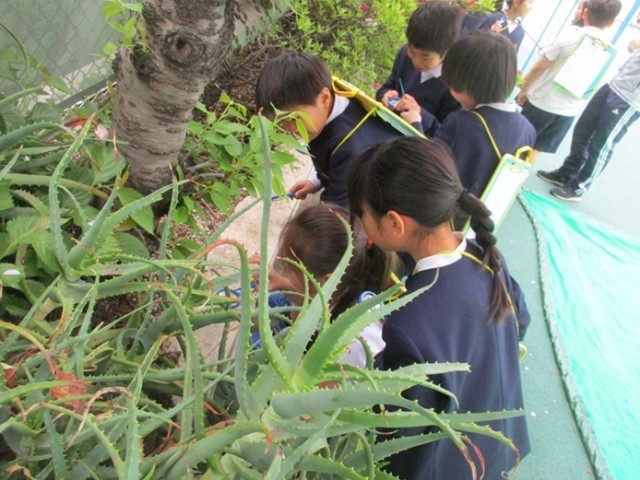 3年生の理科では、校庭の植物や虫を探して観察しました。