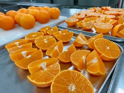 今日の給食に出ている「紅まどんな」は「南香」と「天草」をかけ合わせてできた果物です。ゼリーのようなプルプルした食感とジューシーな果汁が特徴のあまくておいしい柑橘類です。八百屋さんがおすすめしてくれたので、子供たちにも紹介しました。これからいろいろな種類の柑橘類が出回ります。給食でもいろいろな柑橘類を出そうと計画していますが、みかん、オレンジというのではなく、しっかり名前を覚えてもらいたいと思います。