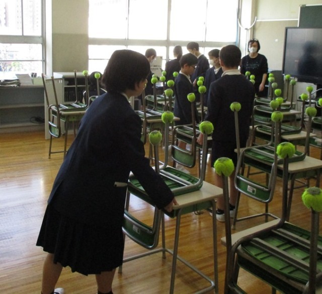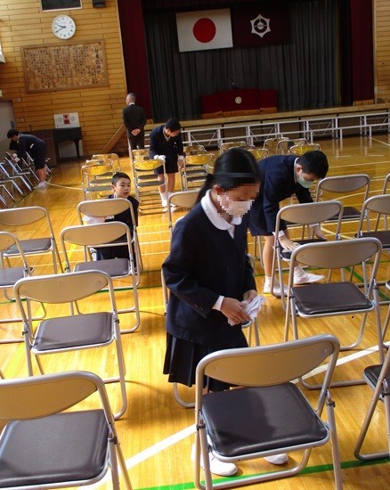 教室を掃除し机を並べ、タブレットなどの備品をセット。入学式の会場準備や歓迎掲示など、手際よくやってくれました。