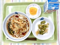 ~今日の給食~○かみかみかきあげうどん○かぶときゅうりの和えもの○柿○牛乳~もぐ...