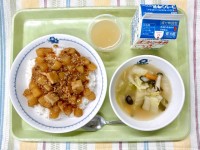 ~今日の給食~○オーガニックなマーボー大根丼○白菜とわかめの中華スー...
