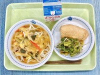 ~今日の給食~○カレーうどん○いなりずし○菜の花のからし和え○牛乳~もぐもぐ通信...